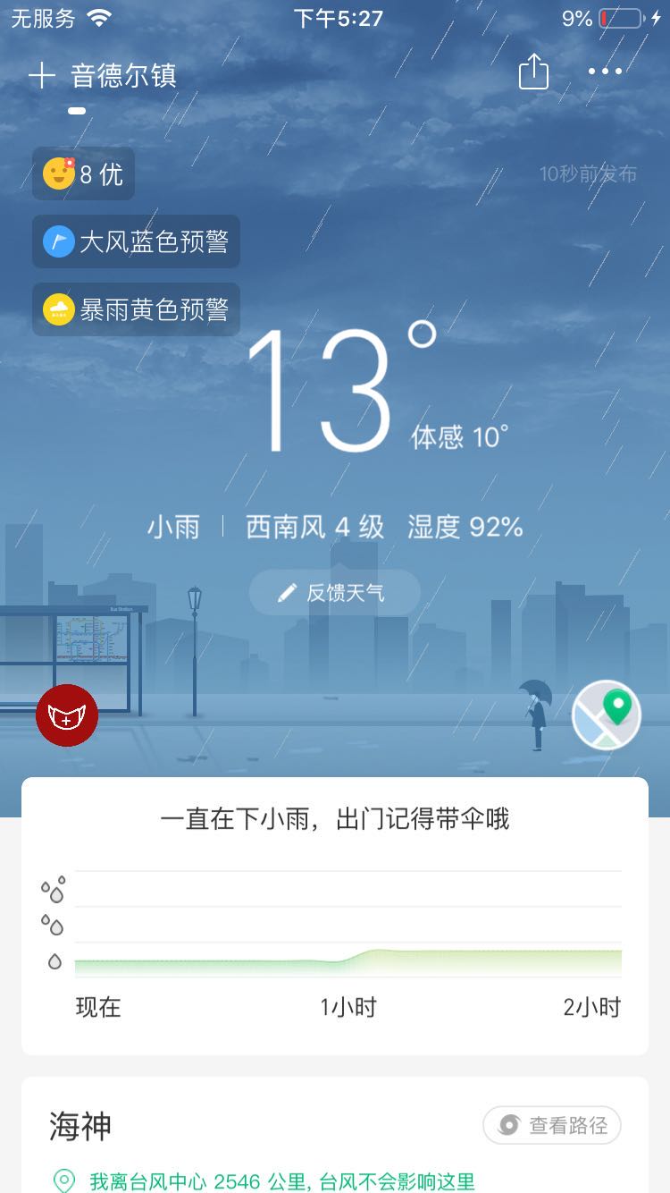 精確到分鐘級降水預報 長達五天的多數據源天氣預報 獨家全國降水雷達拼圖 關注地址獲取降雨提醒